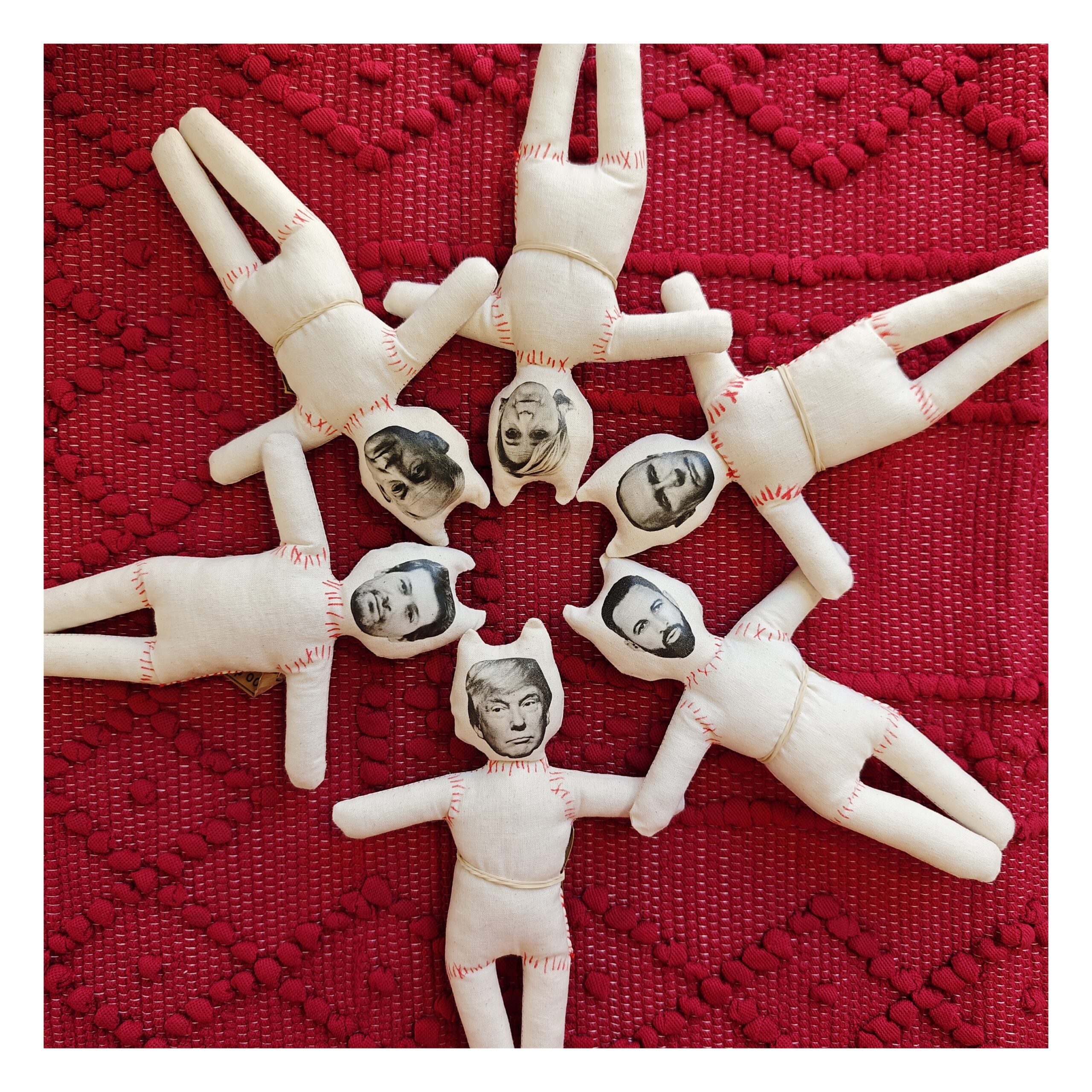 Os bonecos voodoo representam personalidades conhecidas por quase todos. O campeão parece ser Donald Trump, mas há também Erdogan, Bolsonaro, Abascal, Putin, Meloni, entre outros. Da cena nacional, a representação única é de André Ventura, embora existam mais alguns fascistas por aqui.